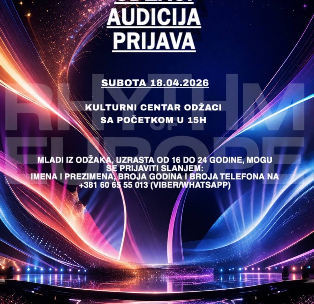 У Оџацима ће у суботу, 18. априла, бити одржана аудиција за учешће младих талената на популарном музичком такмичењу „Ритам Европе“. Почетак аудиције је заказан за 15 сати у Културном центру Оџаци.